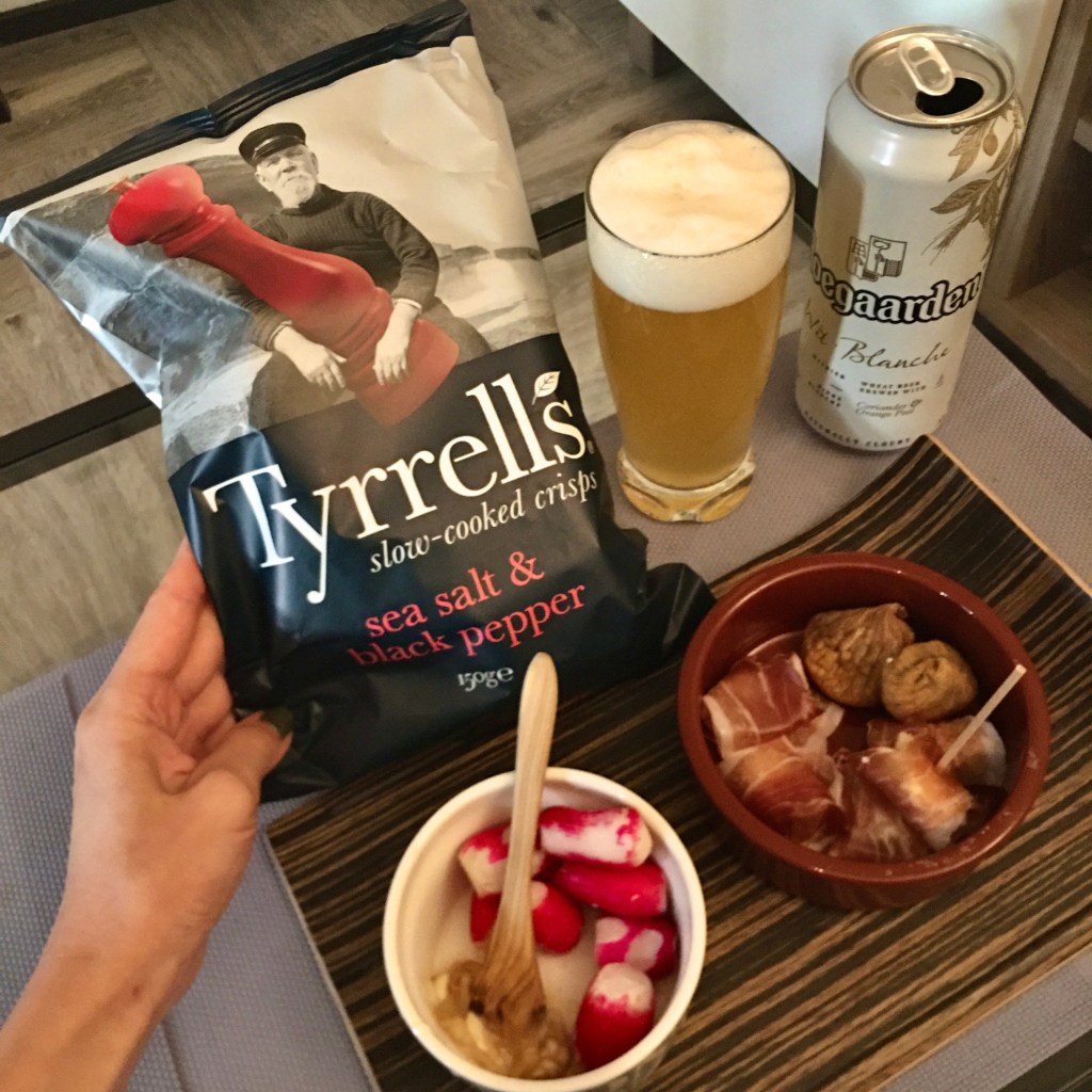 私の家では定番となっており、1人でもちょっとした、本当にちょっとしたおつまみを用意してビール、またはワイン、お酒に炭酸水を割るなどして楽しんでいます。